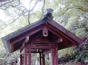 社務所の東南方,参道の鳥居をくぐりぬけた直ぐの左手に建つ。東西棟,銅板葺,切妻造,平入の手水舎で,四面吹放ちとする。柱は転びをつけず,2本宛の控柱を添えて貫,束,桁,梁などにより構成主義的な軸部を造作しているところに特徴がある。