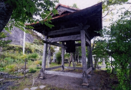 北面する本堂の北西に南北棟で建つ。入母屋造銅板葺とする方一間の吹放ち鐘楼。唐戸面取の方柱を四方転びに建て、足固貫と内法貫、頭貫、台輪で固める。三斗組で中備に蟇股を配し、一軒疎垂木とし、格天井を張る。明治期に整えられた伽藍景観を伝える。