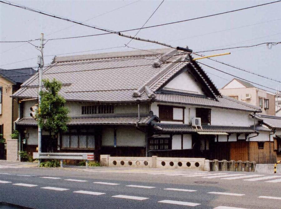 貝塚寺内町北側の入口に当たる上方口の西側に建つ。川沿いにあるためもともと台形平面で,町外からの見付となる北側は段違いに破風を構えた入母屋造とし,且つ昭和16年の道路拡幅で前面南側を3角に切り取られているため複雑な外観を見せる。
