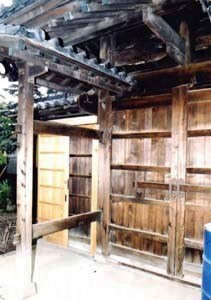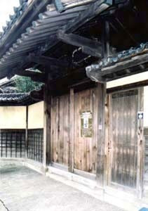 裏門は敷地北辺の東寄りに建ち,塀が左右に連続して敷地の北と東を区画する。裏門は1間1戸高麗門形式で,一軒疎垂木,桟瓦葺である。塀は真壁造で,腰は内外とも簓子下見板張,桟瓦葺屋根をかける。大規模屋敷の後方空間を重厚にかたちづくっている。