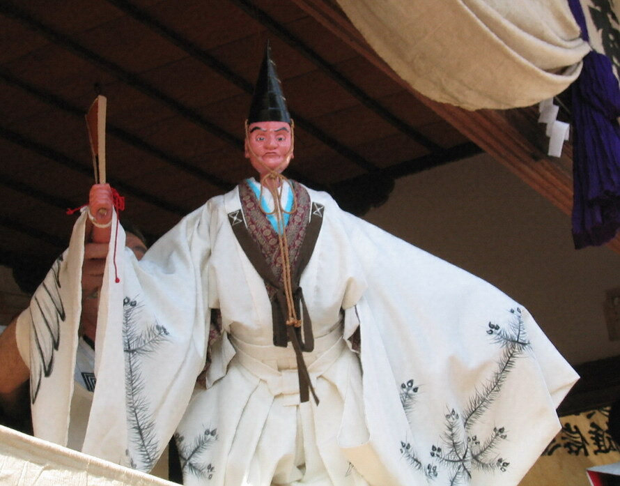 また、謡・囃子も形式は能に習っており、人形の式三番として地方的にも特色あるものである。