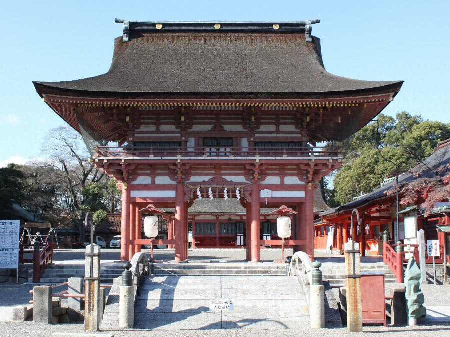 三間一戸楼門、入母屋造、檜皮葺