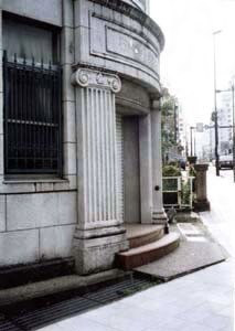 浅野川大橋南方の交差点に面した不整形の敷地に建つ。清水組の設計施工で,外観はネオルネサンス式を基調とし,胴蛇腹で上下にほぼ1対2に分割し,出入口はイオニア式の片蓋柱で飾る。曲面で構成される変化のある立面をもち,ランドマークとして目立つ建物。