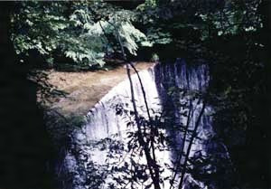 千代川水系曳田川の上流域に築かれた砂防堰堤。川の狭窄部分に建設された堤高10mの石張谷積のアーチ式堰堤で,右袖部に名称,建設年度等を陰刻した銘板を嵌め込み,下流側には重力式の副堰堤を設ける。天端石を堤体の前方にわずかにせり出すのが特徴的。