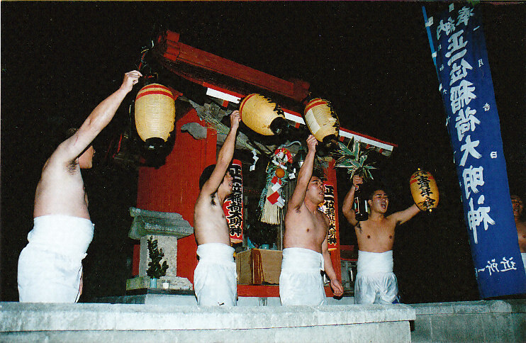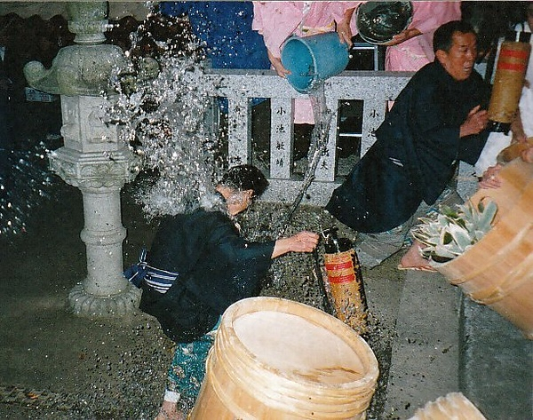 この行事は、初婿入りする婿に水をかけて祝う習俗で、従来、若者組の年頭行事の一環としてなされてきた古風をよく残したものである。氏神の境内で輪踊りをした後、初婿に対して水を浴びせかけて祝う。(※解説は選択当時のものをもとにしています)