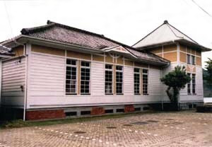 三角旧港東南に南面して建ち,桁行15m梁間9.2mの棟の南面両隅に,テラスで結ばれた宝形造,方形平面の二棟を配する。屋根は破風付の寄棟造で,軒下小壁ではハーフティンバー風に木部を見せる。大正期らしい簡略化されたスティックスタイルの建築物。