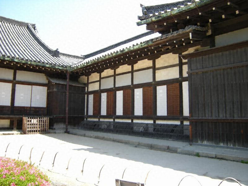 二条城は徳川家康が京都にのぼった時の居館として創築されたものであって、慶長六年(一六〇一)に着手されたが、工事が行われたのは翌七年からと思われ、同八年三月には家康がここに入城しているから、この時すでに主要な部分は竣工していたのであろう。その後、三代将軍家光が寛永三年(一六二六)の後水尾天皇の行幸を迎えるにあたり、大改修がなされた。二の丸御殿は桃山時代に完成された書院造の最も典型的な例であって、外観においては遠侍、式台、大広間、蘇鉄の間、黒書院、白書院などの各建築が接続しあるいは渡廊下でむすばれ、雁行して、大小の破風や屋根が重なり合って相ならぶ。内部においては主要な部屋には上段の間があり、そこには書院造の格式である床、棚、書院を構え、帳台構を設ける。各部屋とも壁、襖には一面に狩野派の彩色の障壁画を描き、欄間には豊富な彫刻を嵌め、天井の格間には彩色画を施し、長押を始め随所に豊麗な飾り金具を打っている。これらの豪華な手法は桃山時代建築の特色を遺憾なく発揮したものである。