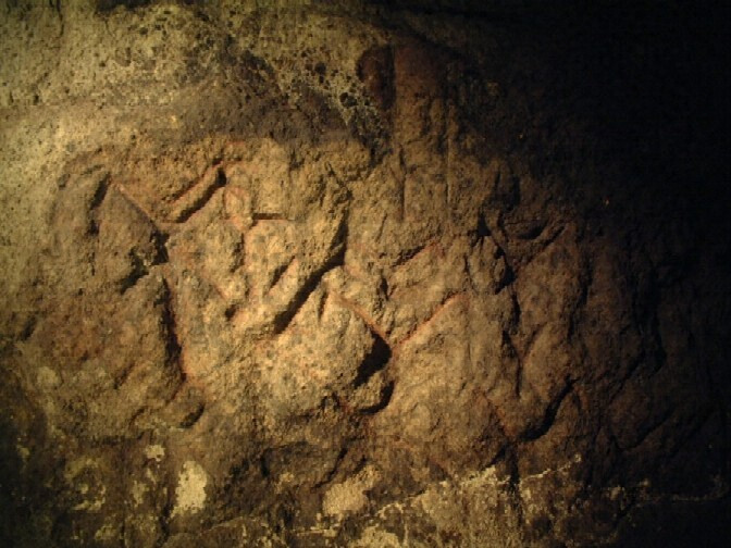 壁面ニ一種ノ文字様ノモノヲ現ハス他ニ全ク類例ヲ見サルモノニ屬ス