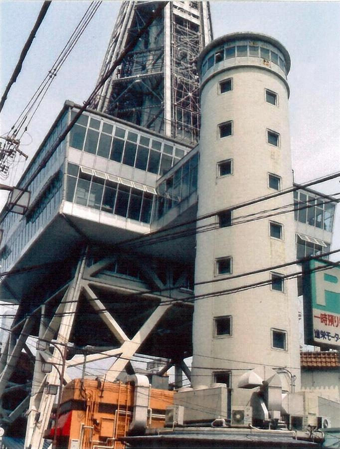 難波の東南に位置する。脚部をSRC造とした103m高の鉄塔で,塔の東側には円筒形の補助塔を設ける。四角形から八角形に平面形状が変化する塔身に独特な形状の展望台を戴き,四周に広告用等の施設を付設し,大阪のシンボルとして広く親しまれる。