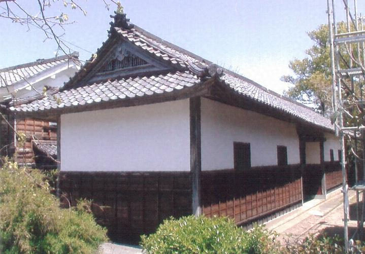 敷地の南正面に建つ桁行12間半,梁間2間半の木造平屋建で,入母屋造,桟瓦葺とする。桁行ほぼ中央の3間を門とし,間口10尺の門柱に両開の門扉を釣込み,西側に潜戸を設ける。外壁は白漆喰塗で,表側に小さな格子窓を開き,腰を押縁下見板張とする。