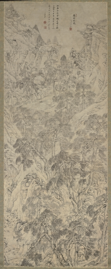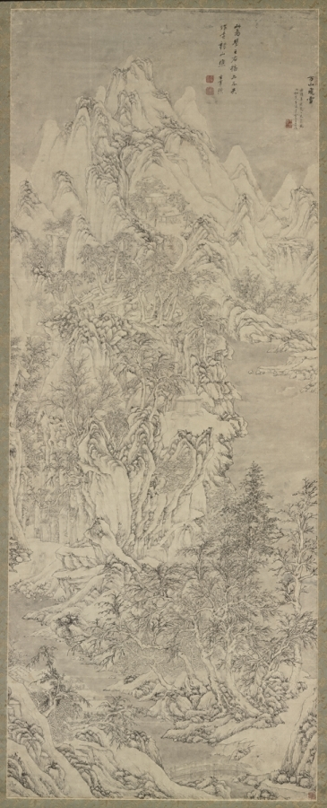 紙本墨画四万山水図〈文伯仁筆/嘉靖三十年の年記がある〉