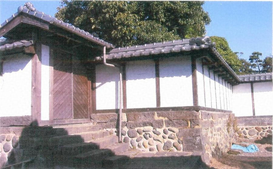 主屋南側の庭の南側と西側を囲い,質蔵北西隅から北に延び,矩折れに宝蔵南西方の木造の祠まで延びる。木造で,石造の基礎の上に建ち,出桁で軒を支え,瓦屋根を載せる。南東隅に小規模な腕木門を開く。つくりが丁寧で,屋敷外周の質の高い景観を形成。