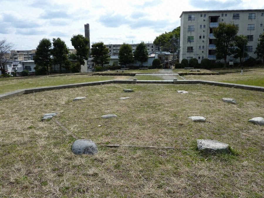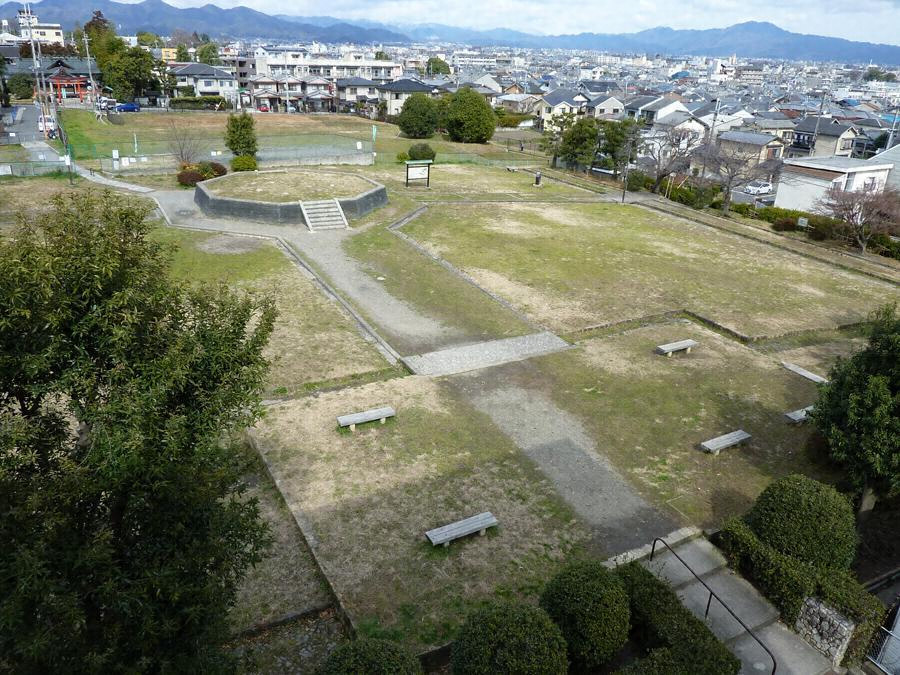 H10-07-064[[樫原廃寺跡]かたぎはらはいじあと].txt: 樫原廃寺跡は、京都市西南部の長岡丘陵東麓に位置する。昭和42年の調査で回廊、中門、築地塀跡とともに、白鳳時代に建立されたと考えられる、国内では発見例のきわめて少ない八角形塔跡が検出され、建築史上重要な寺院跡として昭和46年に史跡に指定された。
