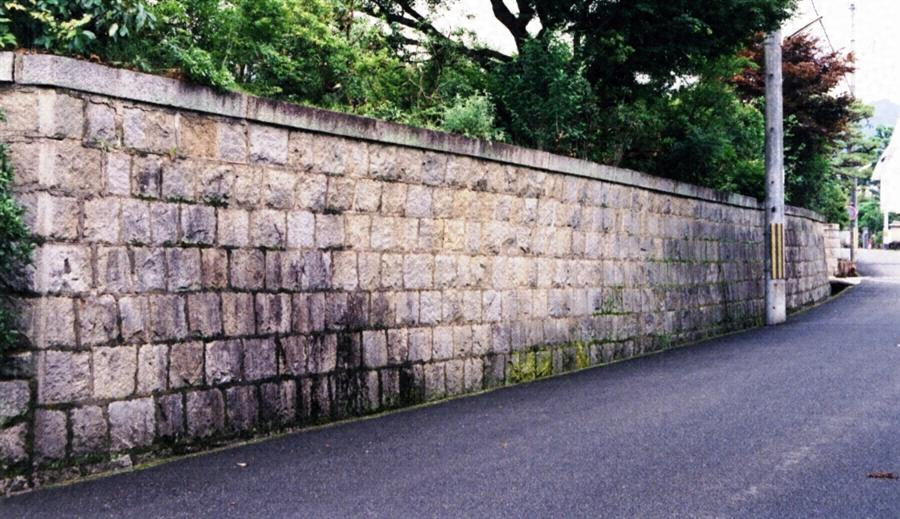 敷地の南辺に築造され、表門の前庭東西にまわり込む。東方が折曲り長20m、西方が長32mで、花崗岩の切石を前面道路の傾斜に合わせて高さ2~3m、6~8段に積み、上面に板状笠石を載せる。内側には土を盛り上げ、敷地の造成と一体的に築造される。