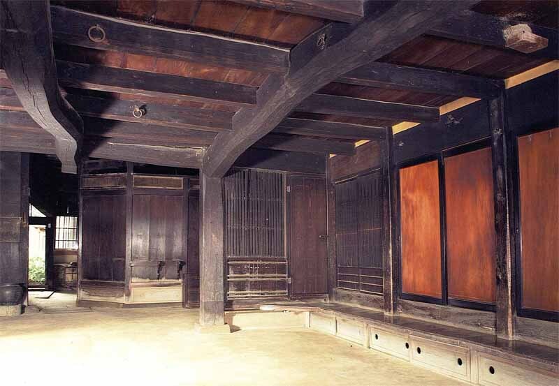 広間及び土間 桁行13.8m、梁間17.9m、一部2階、東面切妻造、西面入母屋造、南面千鳥破風、西面及び南面庇付、北面突出部 桁行3.6m、梁間3.9m、切妻造