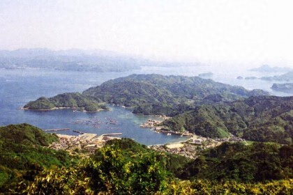 天草下島ノ東海岸ニ近ク峙立セル標高四〇五メートルノ一高丘ニシテ上島ノ龍ヶ岳ト同シク第三紀ノ硬質礫砂岩ヨリ成ルモ山上ハ平坦ナル草地ヲナシ龍ヶ岳ト共ニ天草ニ大展望臺ノ一トセラル天草中ノ海ヲ隔テヽ其東方ニ横ハル長島獅子島御所ノ浦等ノ諸島群ハ脚下ノ長汀曲浦ト共ニ瀬戸内海式ノ一大風景ヲ展開シ遠山近水ノ大觀ハ殆ンド龍ヶ岳ト相異ナル所ナキモ其ノ背面ノ風景トシテ灣曲出入ノ妙ヲ盡セル羊角灣ノ一大溺谷ヲ一溺ノ裡ニ收メ且四面快濶ニシテ一大パノラマ臺タルノ觀アルハ本山ノ特色トスル所ナリ