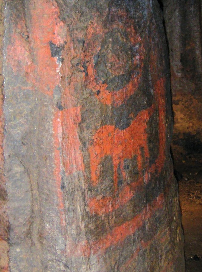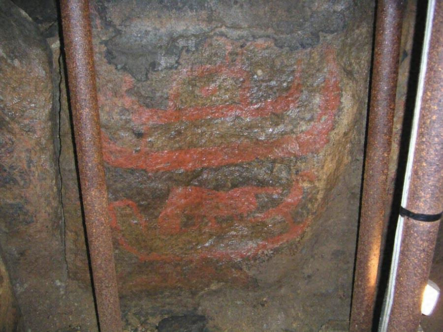 石室は古くから開口し、壁面の一部に馬を示す図象のほどこされていたことが知られていたが、昭和31年7月、清掃の結果、前室の壁面等に鮮麗な絵画の存することが明かにされた。これらの絵画は、円文、菱形文、三角文を復合した幾何学的な文様のほかに赤色によって馬を乘せた舟、屋形を配する舟等の復雑な図様も施されており、その異色ある表現は雄渾な筆致とともにこの種の古墳壁画の中においてもきわめて優秀なものである。