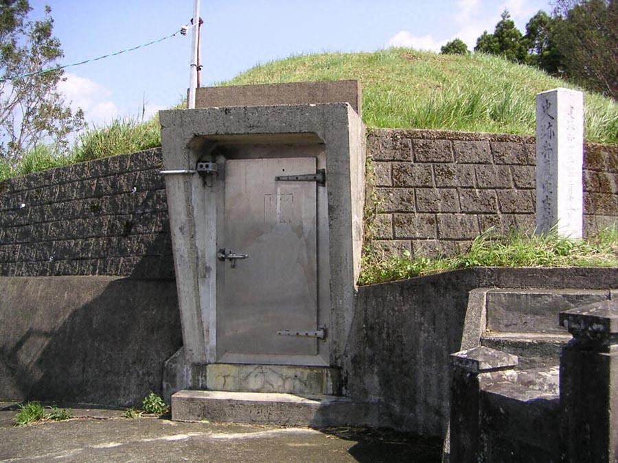 台地上にあり、南面する前方後円墳とみなされるが、前方部はほとんど失われている。後円部は基底径推定約27メートル、高さ約5.70メートルを有し、ほぼ西南に面して横穴式石室が開口している。石室の羨道部は缺失し、前室と後室との二室のみが存するが、側壁は下方に巨大な板石を並列せしめ、上方に横に長く割石を積築して次第に縮約を見せ、天井石に達するもので、後室の奥壁には、左右に袖石を立て上に棟をもつ屋根形の板石を架した厨子状の施設がある。後室の長さ約3.45メートル、幅約2.75メートル、高さ約3.60メートル、前室は長さ■有する。