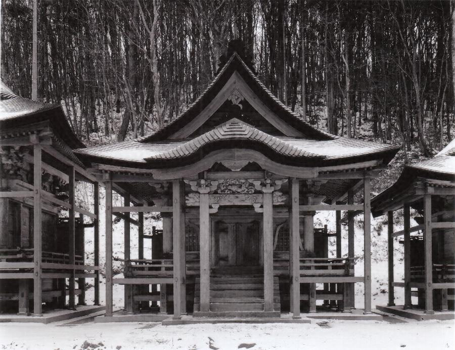 五社堂は、中央に正面入母屋造、妻入の赤神権現堂をおき、この両側にやや小規模の同形式の堂を二棟づつ並べている。各堂とも要所に彫刻を施して装飾する。