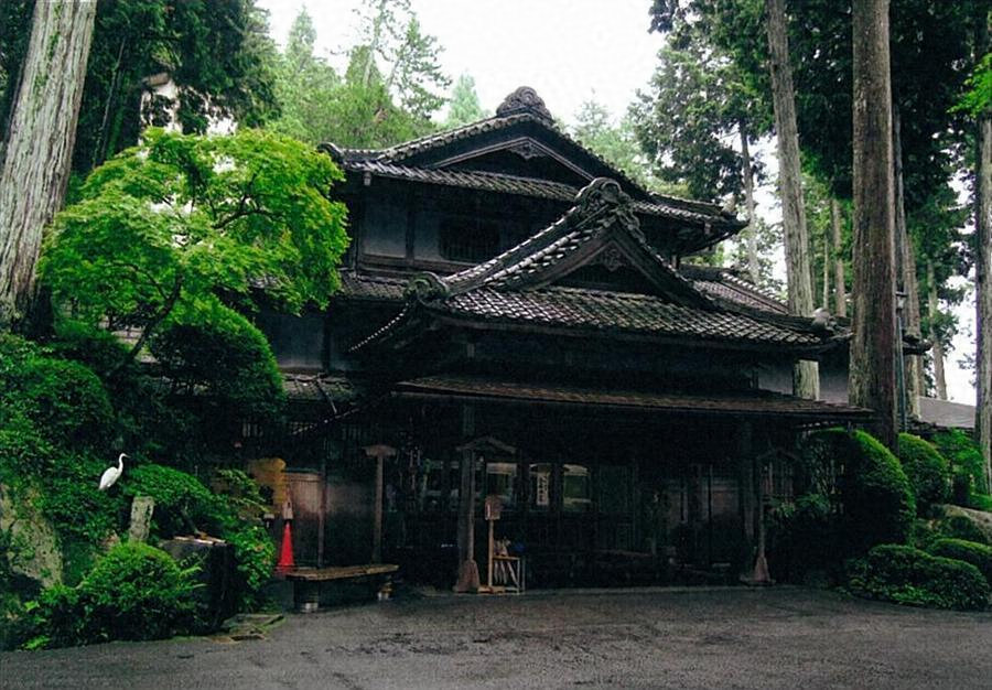 渡り廊下を挟んで本館の西側に建つ。木造平屋一部2階建、桟瓦葺、建築面積161㎡。1階の南北棟入母屋屋根の中央に、2階の東西棟入母屋屋根が載り、西向きの玄関ポーチ上に入母屋造の妻面を見せる。重層する屋根と黒漆喰仕上げの外壁が重厚な趣を呈する。