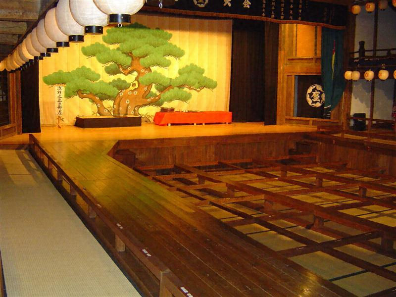 旧呉服座は舞台、花道、平場、桟敷、楽屋などよりなる木造二階建の芝居小屋で、昭和四十六年に大阪府池田市より明治村に移築され、旧規の姿に復原されたものである。