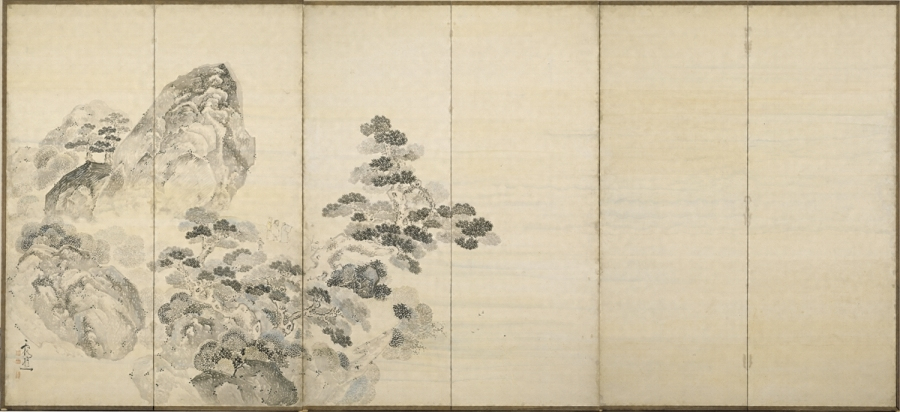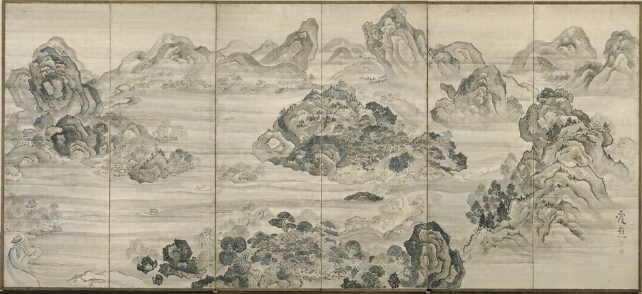 紙本淡彩西湖春景銭塘観湖図〈池野大雅筆/六曲屏風〉
