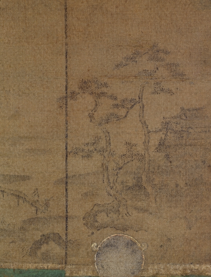 本図は箱書からもわかるように、土佐家に伝来していることから、筆者も土佐派の絵師である可能性が高いが、特定の人物を確定するまでには至らない。制作年代は、賛文など直接的手がかりとなるものがないため、判断に困難をともなうが、背後の襖絵に描かれた水墨画などによって推測すれば、おおよそ室町時代中期と考えられよう。
