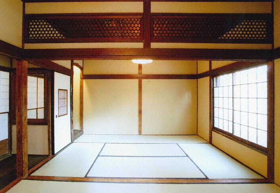 交差点の北西角地に位置する。木造2階建、角地にあわせたL字型を基本に隅を斜めに削る。切妻造桟瓦葺とし、隅には千鳥破風を飾る。外壁は下見板張で、小壁を漆喰で仕上げる。2階は座敷で開口部には欄干を出す。町のランドマークとして親しまれる。