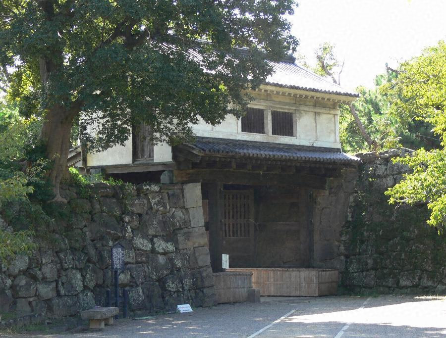 和歌山城は元和五年德川頼宣が入国して、大いにその規模を整え、名城と呼ばれていた。 天守の他多くの重要文化財建造物を今次戦災で焼失したが、この岡口門はわずかに難をまぬがれて残存した。 この位置は旧大手にあたり、門は元和年間の建立と思われる。 櫓門の形式でこの構造手法にも特徴があり、和歌山城の貴重な遺構である。