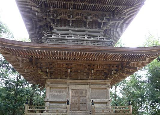 津山藩主森氏によって再建された三重塔。 外部は古式で正統的な手法をもつが、内部の構造は桔木に頼った軒の支持方法や、手先肘木の繋ぎ方などに新しい手法がみられる。近世的構造手法を取り入れた初期の塔の遺構。