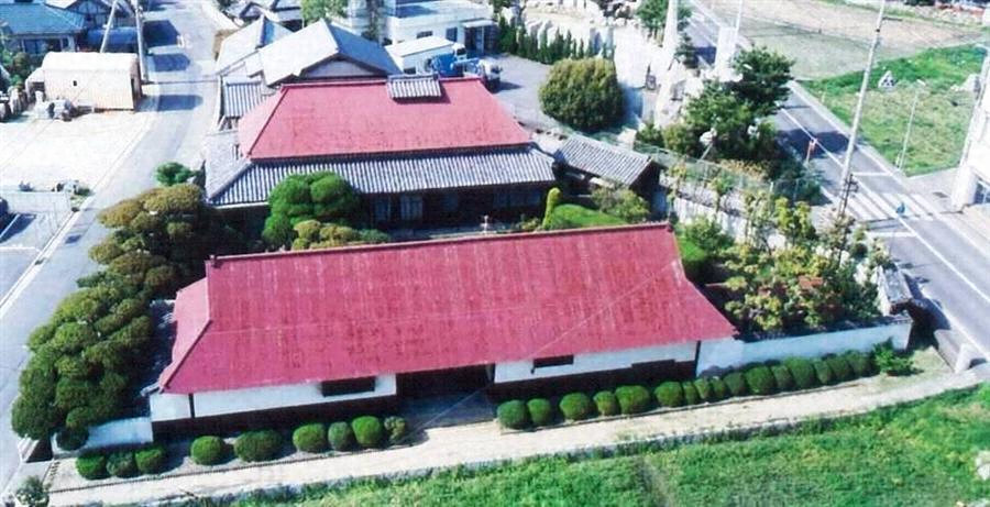 三角形敷地の中央に南面して建つ。寄棟造,茅葺(鉄板仮葺)の身舎四周に本瓦葺の下屋を廻した四方蓋造。平面規模は桁行18m,梁行9m規模で,東方を土間,西方を床上部とし,南面中央に式台玄関を設け,棟東寄りに煙出しを上げる。讃岐地方民家の好事例。