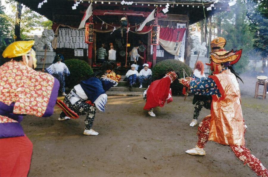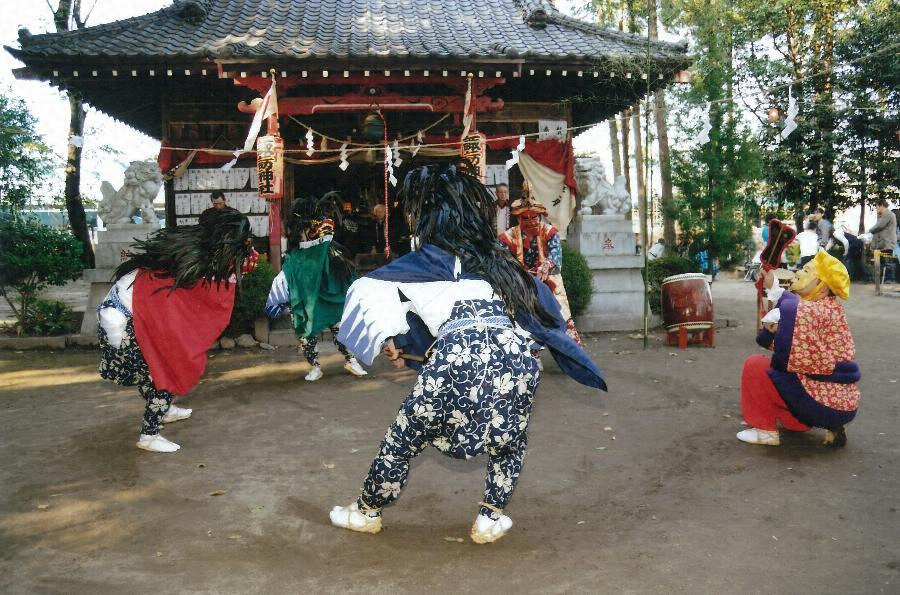 舞は獅子頭をつけた前獅子・中獅子・後獅子の3人と、天狗面と烏甲をかぶったカンカチ1人、大黒面をつけた大黒様1人の5人で構成される。一人立連舞形式で笛方の曲に誘導されて獅子自らが腰の太鼓を打って舞踏する。通常は赤鬼、青鬼の2人が舞の開始前に霞新流の棒術を行い、大黒様の悪魔祓いのかけ声に舞方が円形を成し舞を行う。