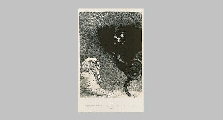 「ギュスターヴ・フロベールに」(「聖アントワーヌの誘惑」第二集) Ⅴ.スフィンクス:・・・・・・私のまなざしは何物にもそらされることなく、万象の彼方、近づきえない地平のはてにじっと向けられたままでいるのだ。キマイラ:私はね、軽々として陽気だよ。