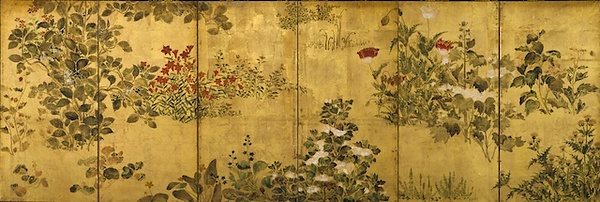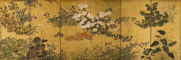 四季草花図屏風