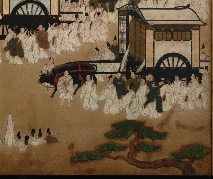 紙本著色車争図〈(伝狩野山楽筆)/四曲屏〉