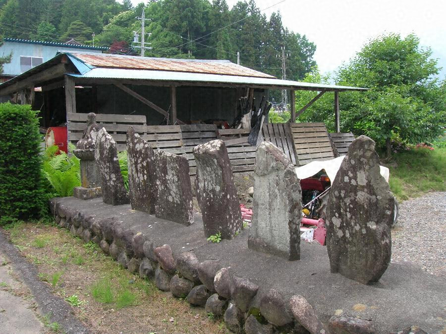 波田地区のなかで、造立年代の刻まれたもっとも古い地蔵尊である。自然石に線彫りで六地蔵が刻まれているが、当時の人々の頼みで、名もなき石工が刻んだものであろうか。1体ずつの表情が異なり、素朴な味をもち趣が深い。いずれの像にも、寛永12年6月吉日の記年があり、若澤寺参道に丁石が建てられた年月と一致しており、その頃の村人の信仰心の高まりが偲ばれ興味深い。