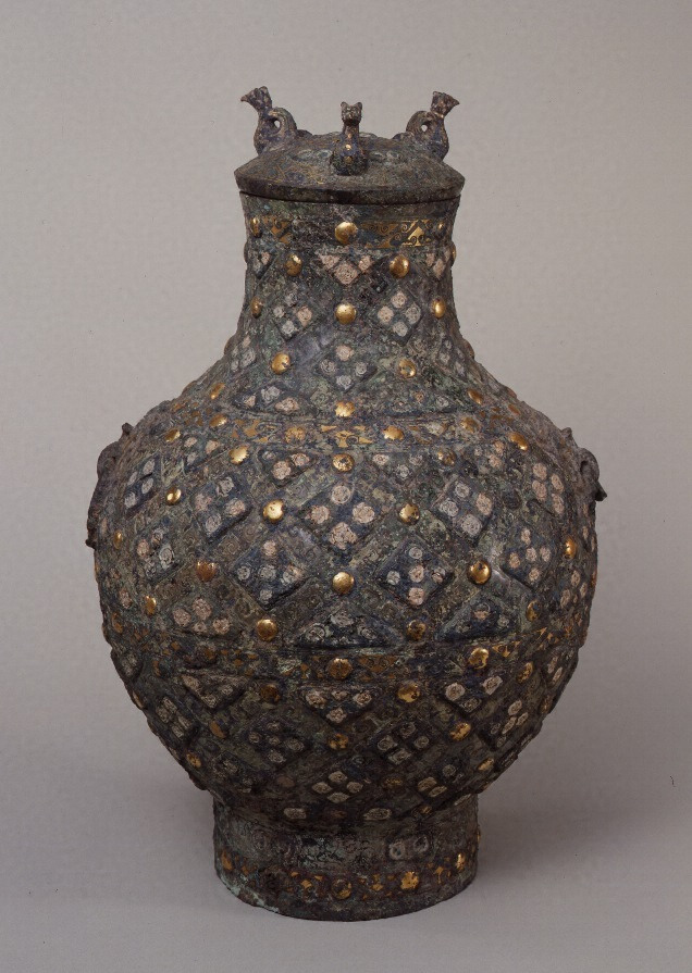 嵌珠金銀錯斜格子文壺