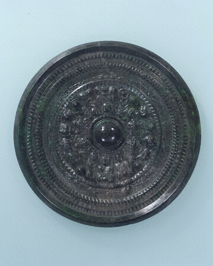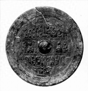 利根川支流の一つ、広瀬川中流域の右岸段丘上に位置する前方後円墳(全長約一三〇メートル)からの出土品である。それは五面の鏡鑑類をはじめ、玉類・鉄製利器類・銅鏃など豊富な種類と数量を誇る。なかでも神仙鏡、白虎・朱雀を配した禽獣鏡【きんじゆうきよう】はこれまでに類例の知られていないものとして注意を惹く。