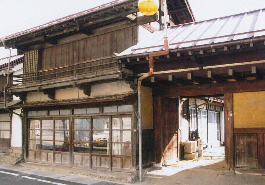 旧土蔵の南に位置する。中央に表門を開き、北に二階屋の旧店舗、南に物置を配する。木造で、建築面積116㎡。表門と物置は一連の屋根で、旧店舗とともに切妻造鉄板葺。いずれも出桁造とし、一軒疎垂木とする。風格ある表構えが街道景観を整える。