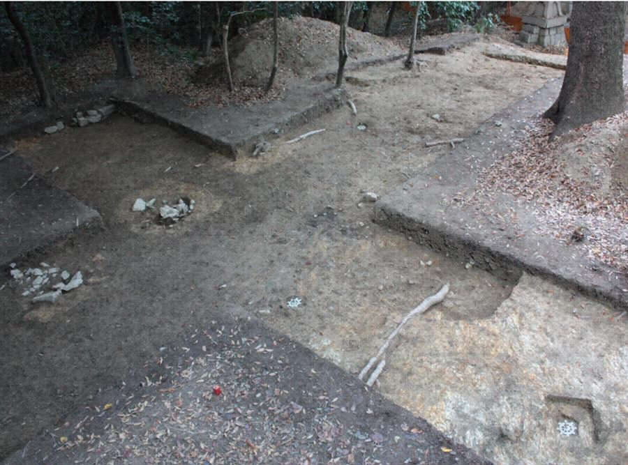 創始当初から廃仏毀釈(はいぶつきしゃく)まで神仏習合(しんぶつしゅうごう)の宮寺(ぐうじ)の形態をとり,境内には寺院施設,社僧(しゃそう)の坊が多数設けられていた。八幡市教育委員会による発掘調査によって,護国寺や坊舎(ぼうしゃ)などの遺構が良好に残っていることが確認されている。