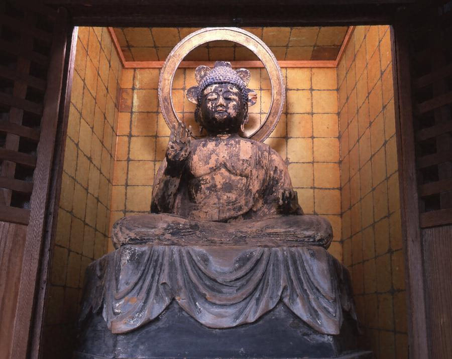 この薬師は、六条院西朝倉の堂山と呼ばれる丘の上にある。この場所は昔、天台宗円珠院末寺・長楽寺のあった所である。堂内に安置の仏像は、今から350年程前に円珠院から移されたものと伝えられている。地区民の信仰の厚い薬師仏である。