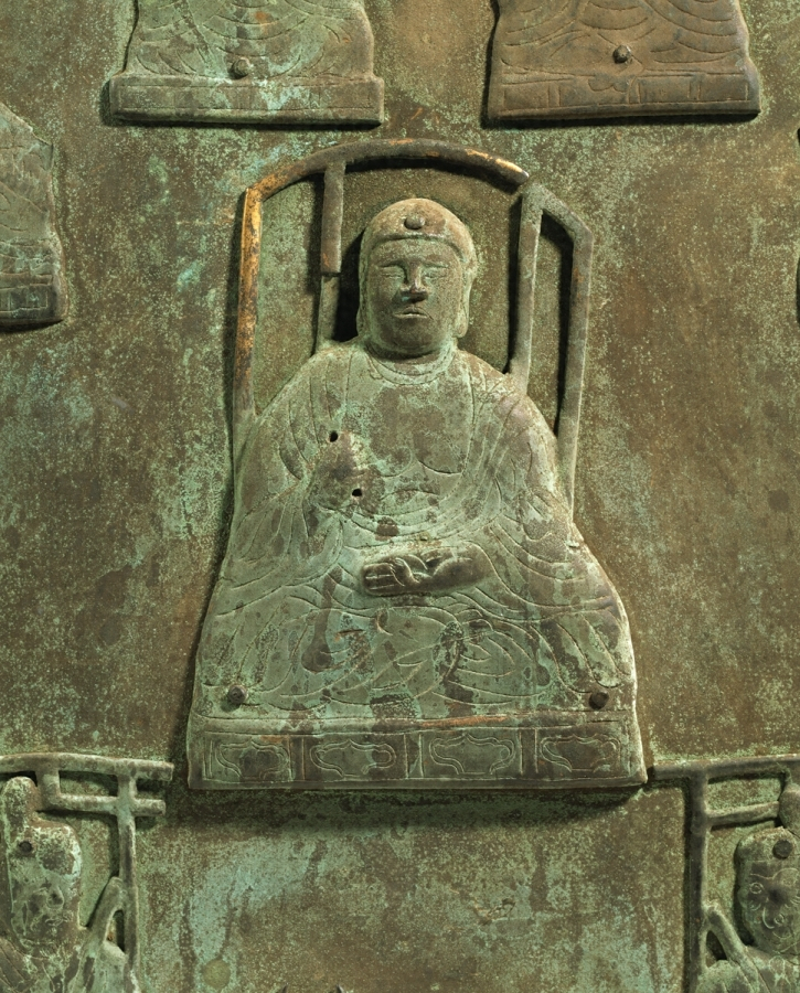 尊像はいずれも床座に坐し、三曲屏または鳥居形屏を背にしており、薄肉に鎚起し、細部に線刻を施した銅製鍍金製で、表面を鏡に擬えて鍍錫した銅製鏡板に鋲止めしている。