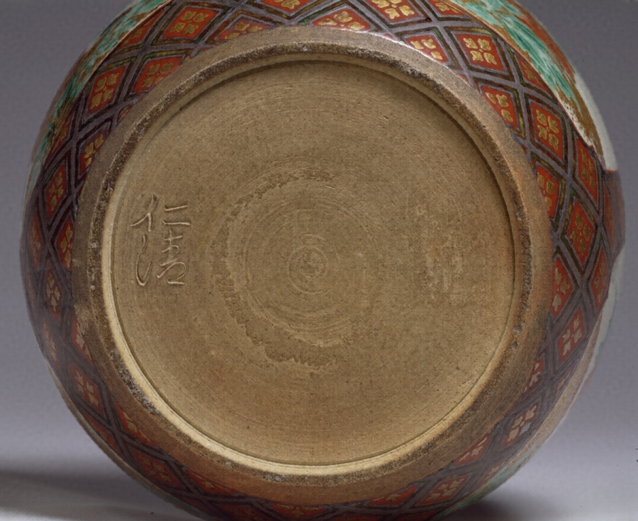 優美な姿に仁清の色絵技法が存分に発揮され、華やかで洗練された趣が横溢しており、仁清の色絵水指を代表する優品として重要である。丸亀藩京極家伝来。
