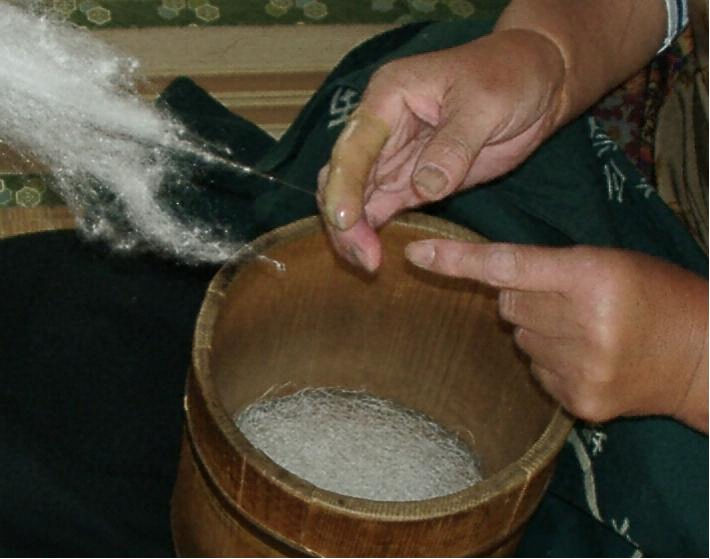 本場結城紬技術保持会は、糸つむぎ、絣くくり、織りに直接携わり、長年の経験を有する技術者によって構成されている。