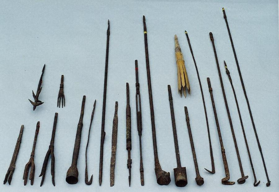 この資料は、手突き段階の用具一式(昭和35年指定)と機械掘り段階の用具一式・水神講関係用具(平成7年追加指定)からなる。