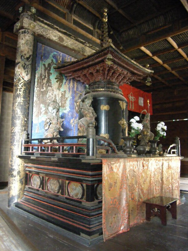 また須弥壇上の宝塔は本尊の厨子で、精巧な作品であり、製作はやはり中世であろう。弘安四年(一二八一)の建立と伝えるので、須弥壇および宝塔その他古い部分はその頃と思われる貴重な遺構である。
