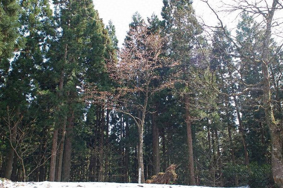 推定樹令三百余年カスミザクラの稀なる巨樹である。