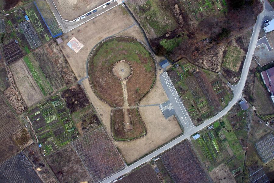最上川を遡った内陸部に米沢盆地がある。この地域は、古くは置賜郡として陸奥国に属し、出羽国の成立とともに出羽国に属したもので、福島県・宮城県方面との文化的交流も深く、弥生時代中期以降の農耕文化を示す遺跡や横穴式石室をもつ古墳群の存在も知られていた。この盆地の東北方に当たる平野部にある低丘陵を利用して営まれた前方後円墳が稲荷森古墳である。この古墳は昭和8年頃に発見され、最近に至って地形測量により再認識され、昭和52~54年にかけて山形県が測量や発掘を行って確認したものである。この古墳は、西南方に向かって連なる小さな低丘陵の一つを利用し、前方部を南々西に向け、後円部の東北方には丘陵が遺存する。この付近は古墳時代中期ころ(南小泉式期等)の集落跡となっている。墳丘は半ばは丘陵を利用し、その上に盛土したものである。全長は約96メートル、後円部径62メートル、高さ約10メートル、前方部は長さ34メートル、前方部端幅32メートル、高さ約5メートルで、後円部は三段築成となっている。後円部に比較し、前方部が短く、また低い特色を示すが、全体として墳形を良く残しているものである。調査により葺石の一部や後円部築成前に破砕された土師器の脚部が検出されている。またくびれ部は中世に土〓(*1)墓として利用されたこともあり、陶器片や人骨等も検出されている。出土土器や大規模化した古墳の形態から5世紀代に属するものと考えられている。