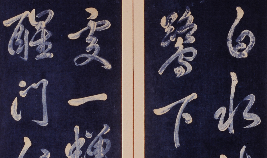 紺紙白字詩書屏風