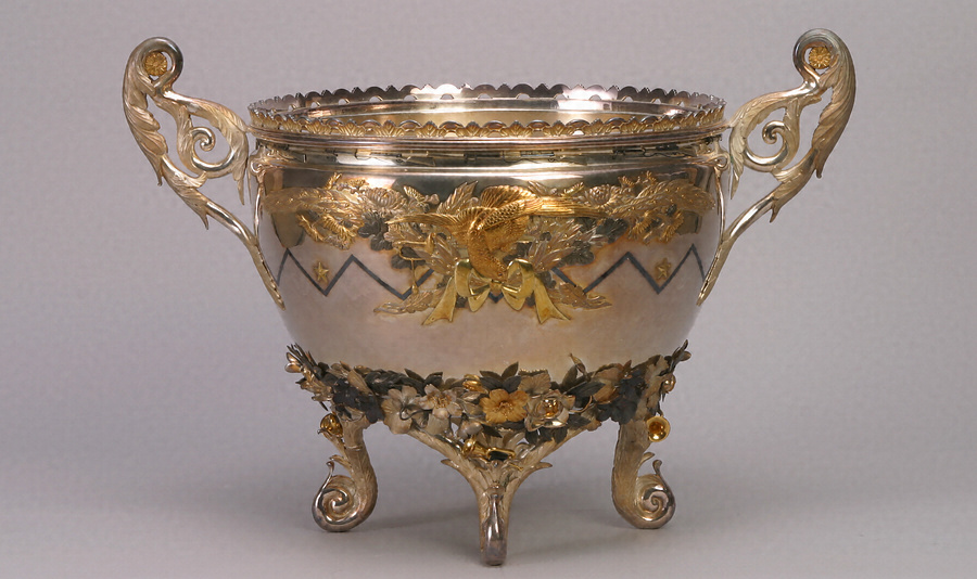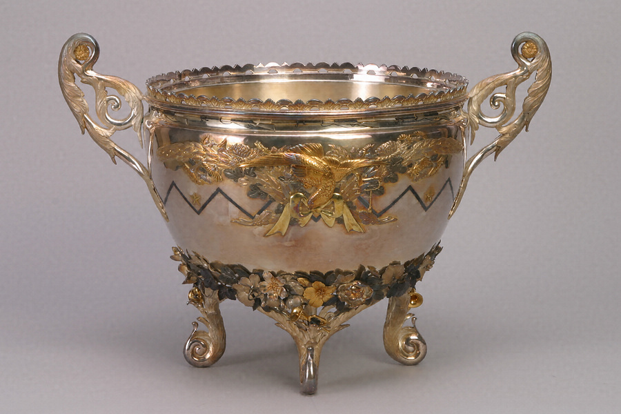 銀製花鳥文花盛器